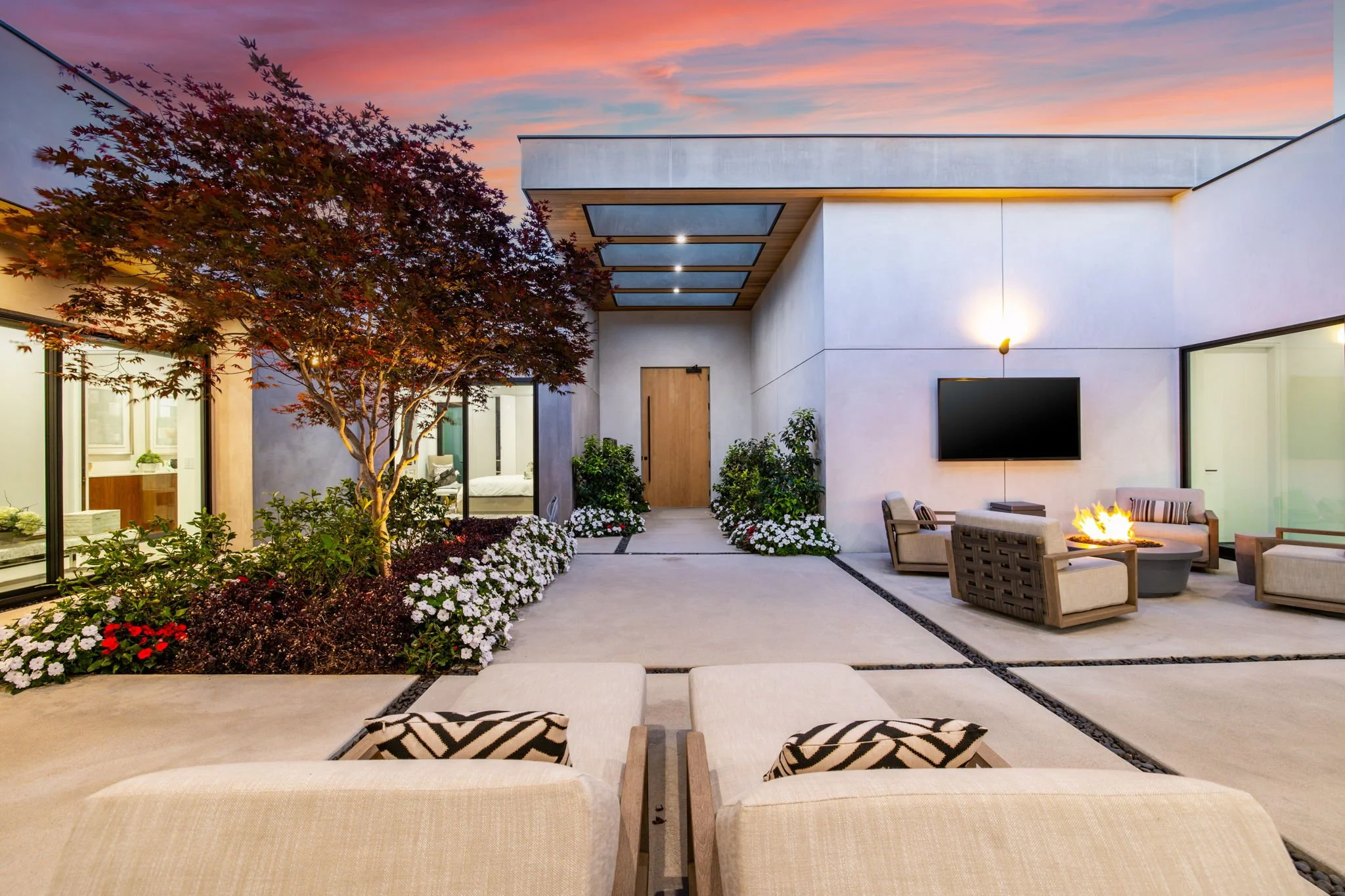 Built over five years with master-level precision, this 4-bedroom, 4.5-bath modern home is centered around a private courtyard that whispers serenity. A sculptural Japanese maple, framed by 30-foot sliding glass walls, greets you with a visual symphony of light, shadow, and natural movement. It’s an instant emotional reset—the kind of entrance that changes your energy the moment you walk in.