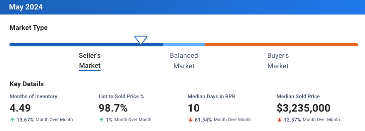 The Median Days Homes are On the Market is only 10 days. This swift turnover rate highlights that homes are selling quickly, likely due to high demand and limited inventory. For sellers, this is a positive indicator, suggesting that they can expect to sell their properties rapidly, benefiting from the current market dynamics.